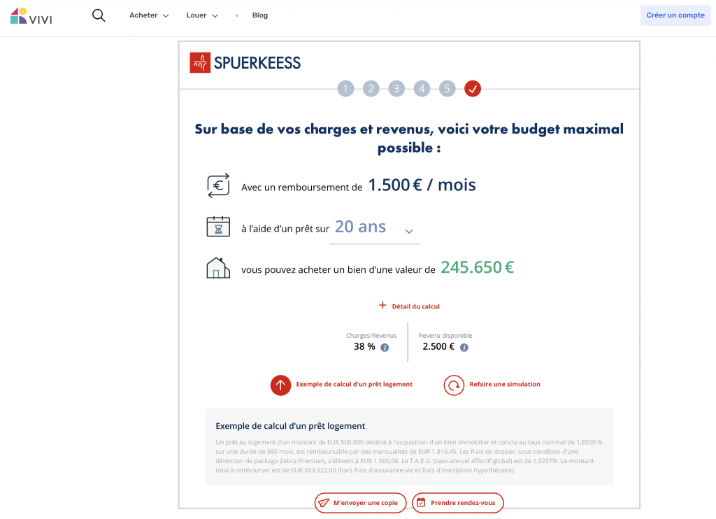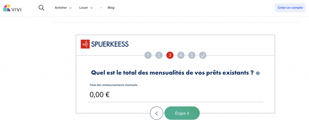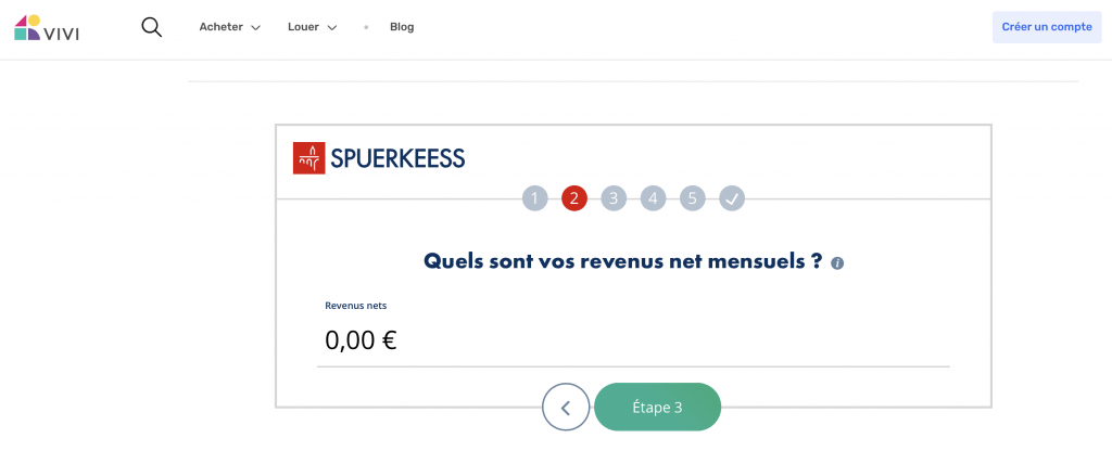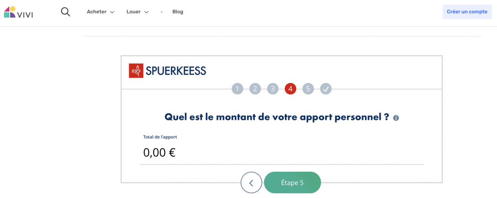 Pour vous aider à définir votre budget, nous vous invitons à utiliser la calculatrice Spuerkeess pour simuler vos mensualités en indiquant le prix d’un bien correspondant à vos critères, ainsi que votre apport personnel.